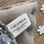 Attention : une fois bien chaude, retirez-la immédiatement du micro-ondes pour éviter l’apparition de petites auréoles brunes sur le tissu, causées par l’humidité du blé.