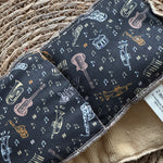Bouillotte tour de cou rectangle instruments de musique noir/ocre