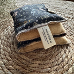 Exceptionnellement, lorsque votre bouillotte aura été utilisée et réchauffée de nombreuses fois (et que le blé sera bien sec), vous pourrez la passer en machine en programme “laine”, dans un filet de lavage, essorage doux à 500 tours/minute.